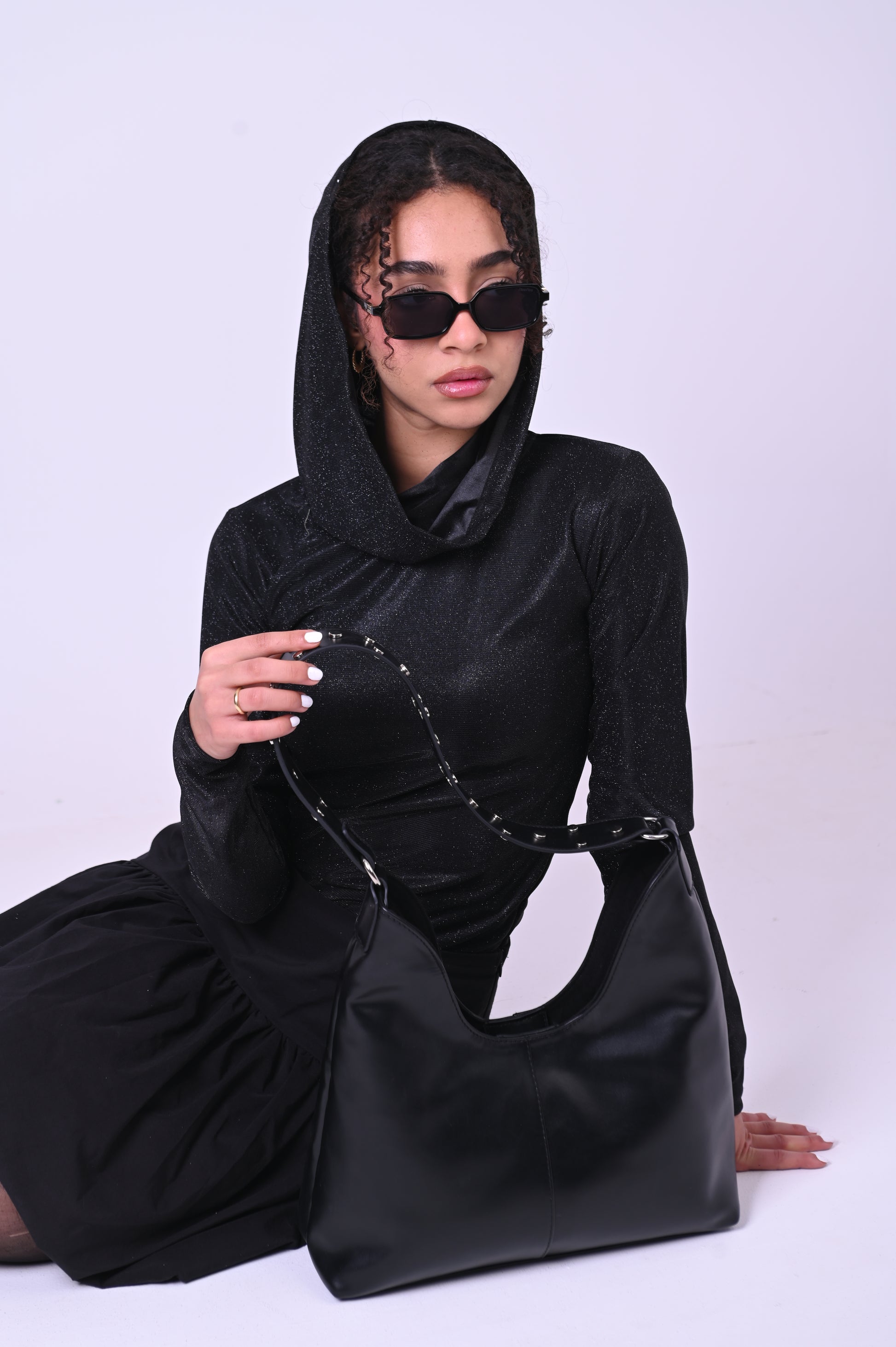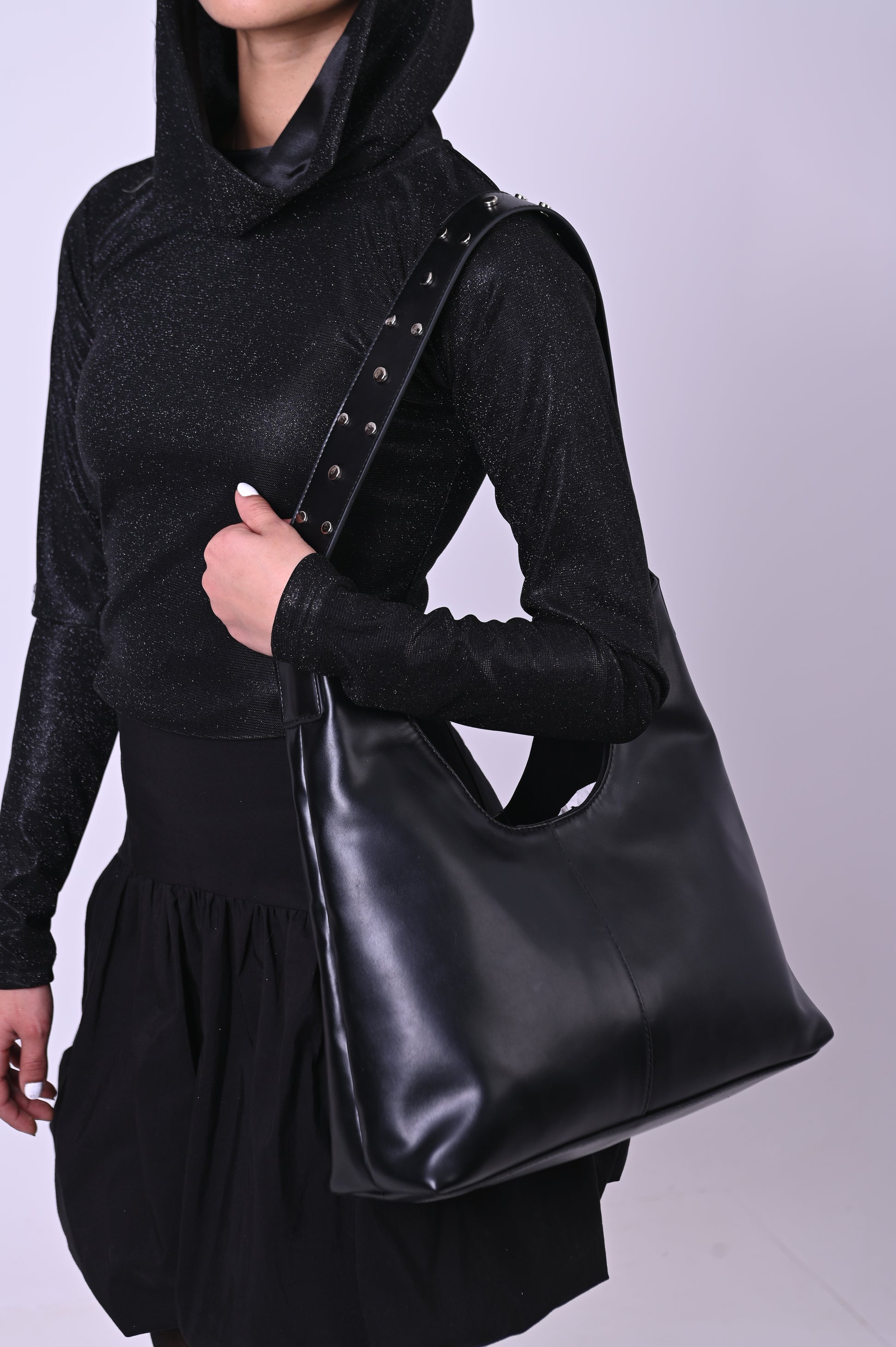 Elevate your everyday look with this chic tote bag, featuring a sleek silhouette and a statement studded strap. Perfect for carrying essentials in style, it blends practicality with edgy elegance, making it a versatile companion from day to night🌟