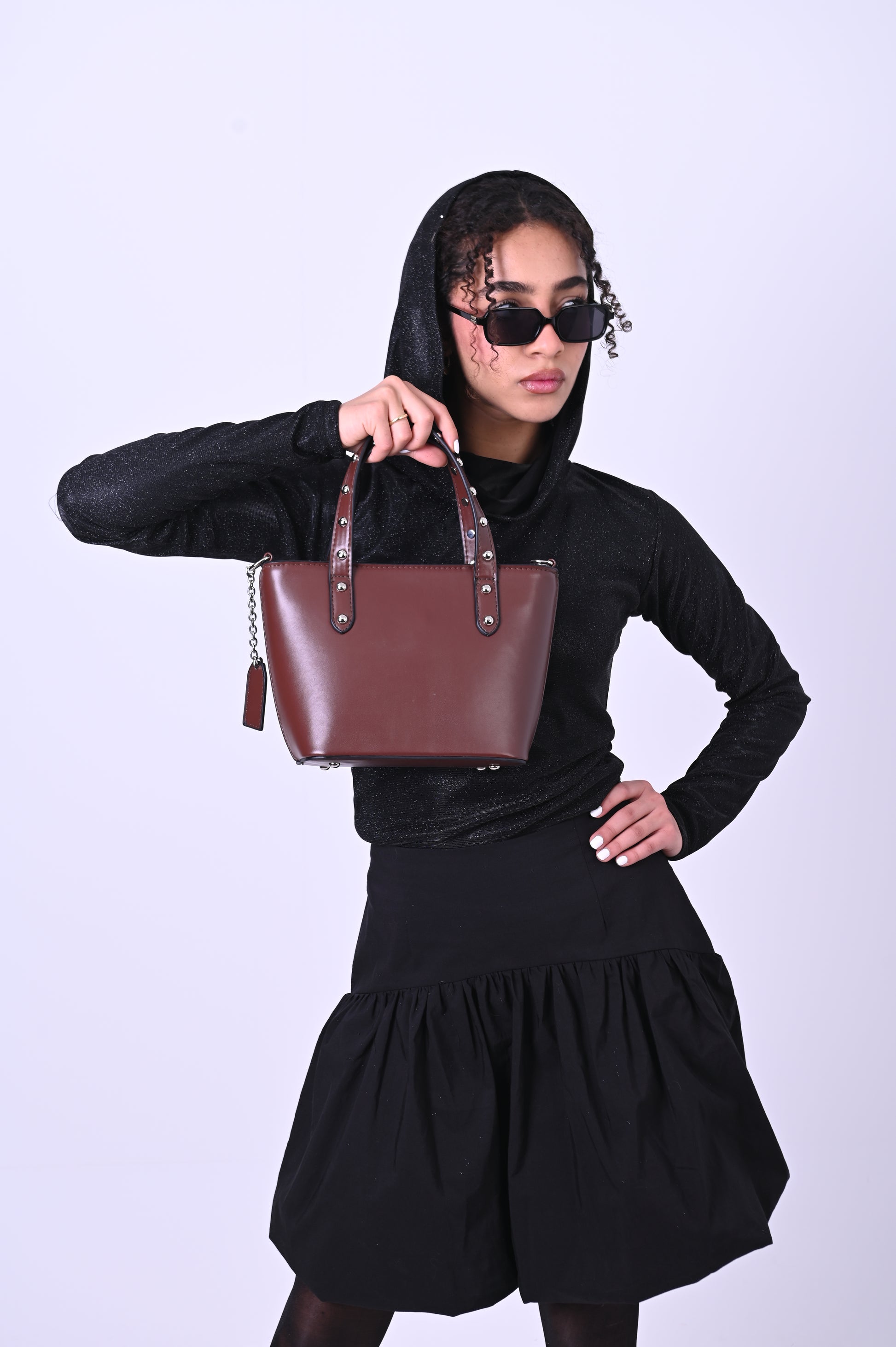 Designed with dual top handles and a detachable chain strap, it transitions effortlessly from day sophistication to evening chic. Compact yet practical, it carries your essentials without compromising on elegance.